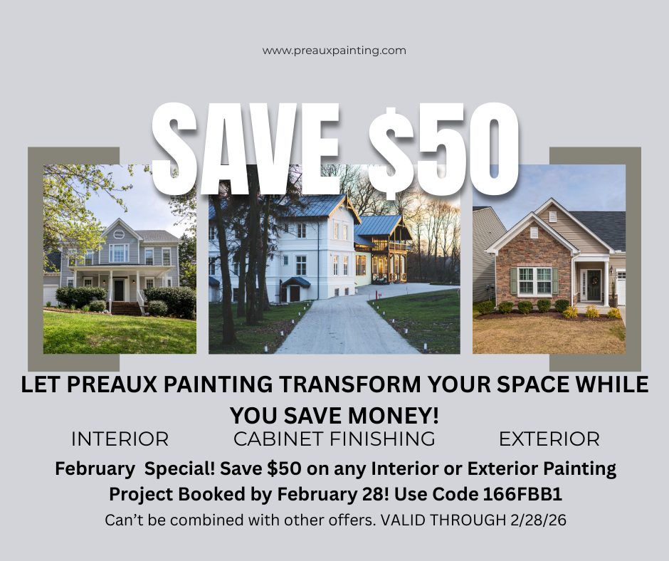Interior painting can change the entire look of your home or work space. From many different colors and textures to fabulous finishes Preaux Painting can bring your vision to life no matter what color you desire. Transparency and clear communication are the pillars of our service, ensuring that you receive detailed explanations, accurate estimates, and timely updates throughout the process. With our supportive approach, you can trust that our dedicated painters will deliver a result that is both beautiful and built to last.
